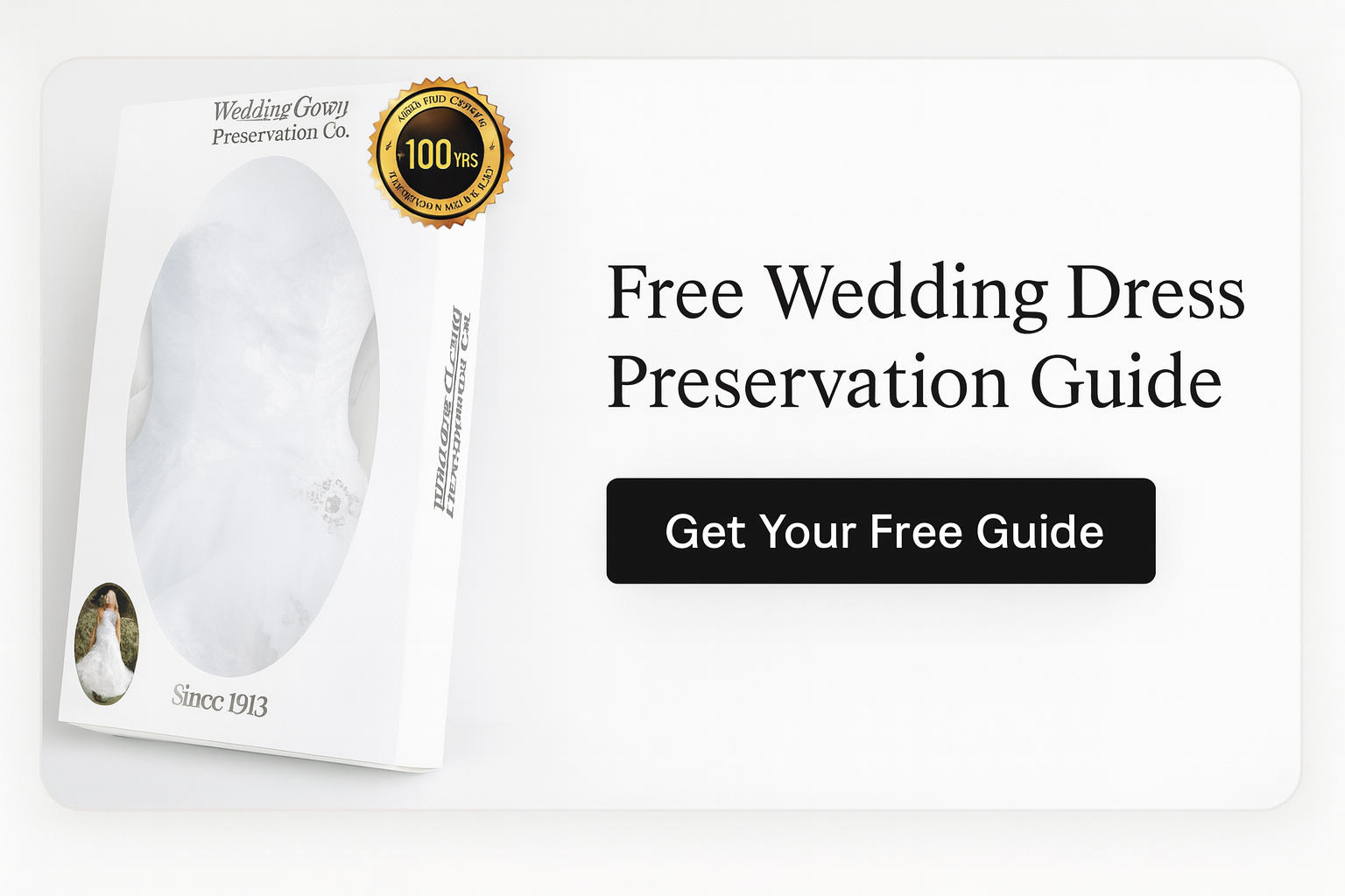 Our free 7-page Wedding Dress Preservation Guide gives you expert advice on how to protect your wedding gowns & dresses for a lifetime.