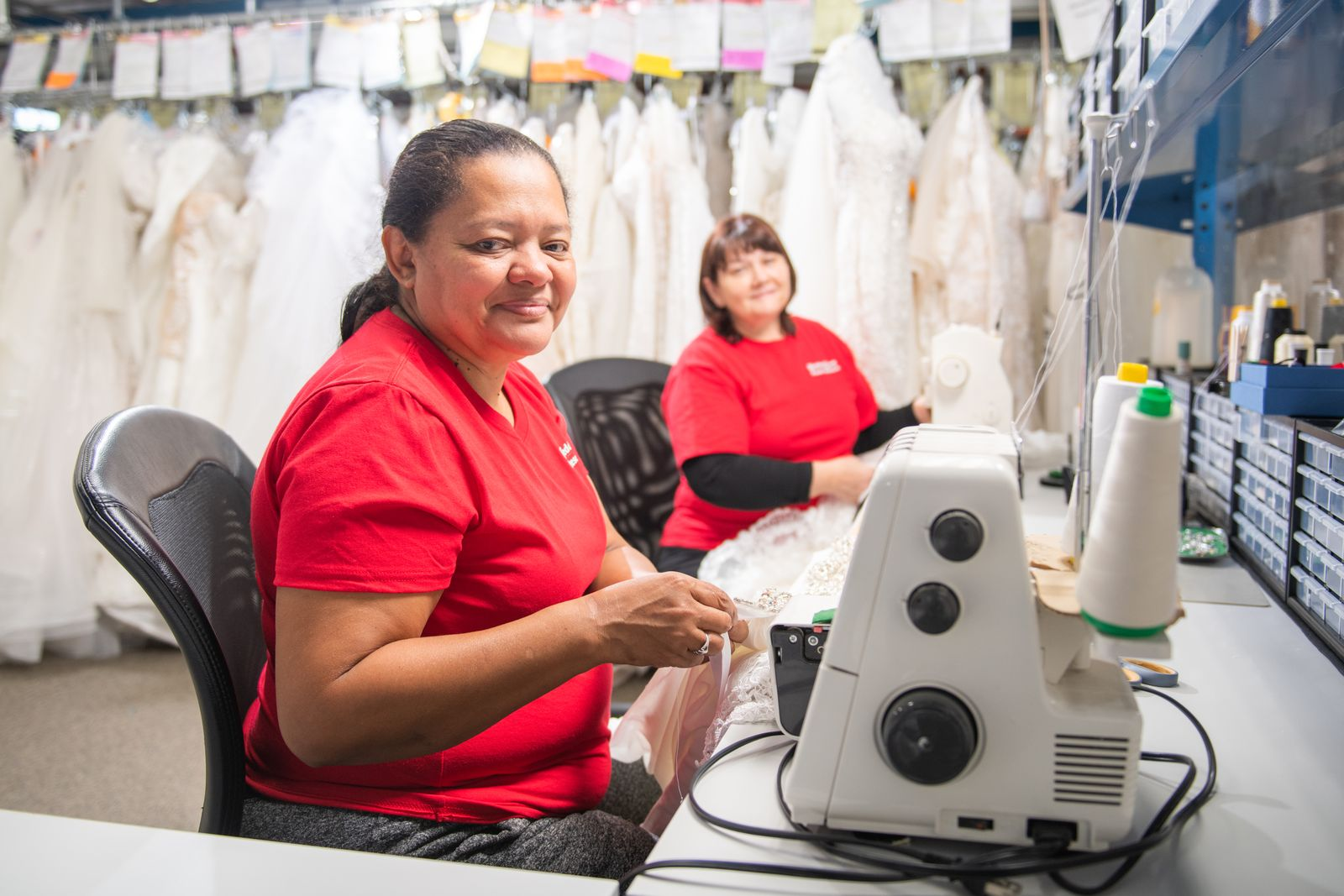 We have in-house export seamstresses who specialize in repairing bridal gowns. From fixing fabric pulls and repairing lace damage to addressing worn material and loose adornments, we restore your dress with expert attention to detail.