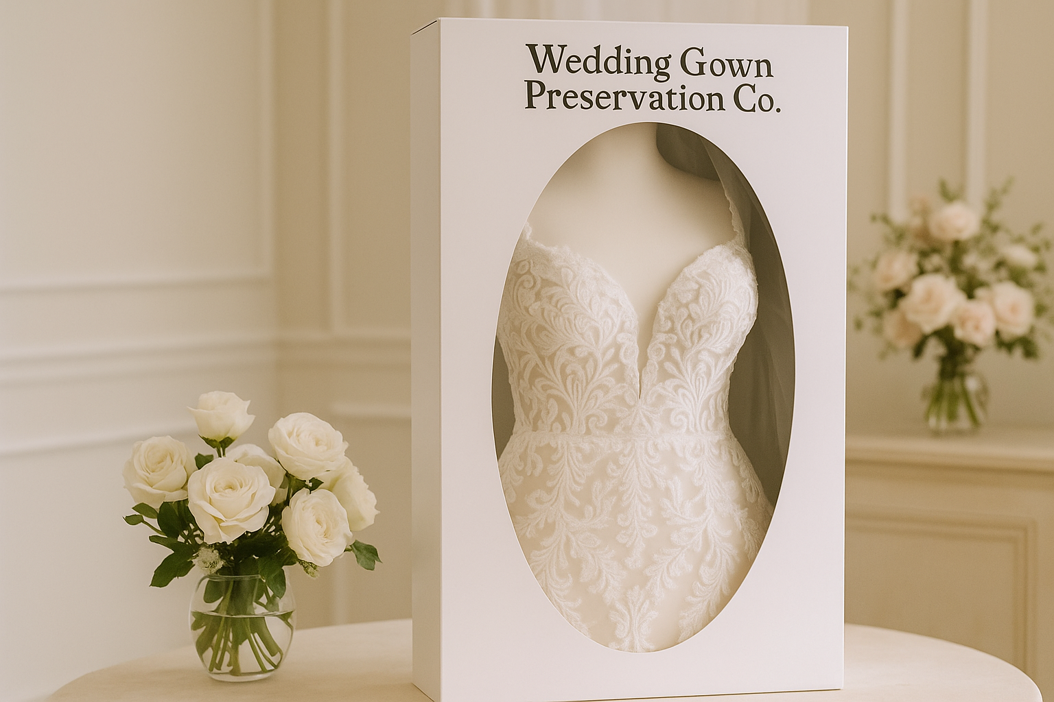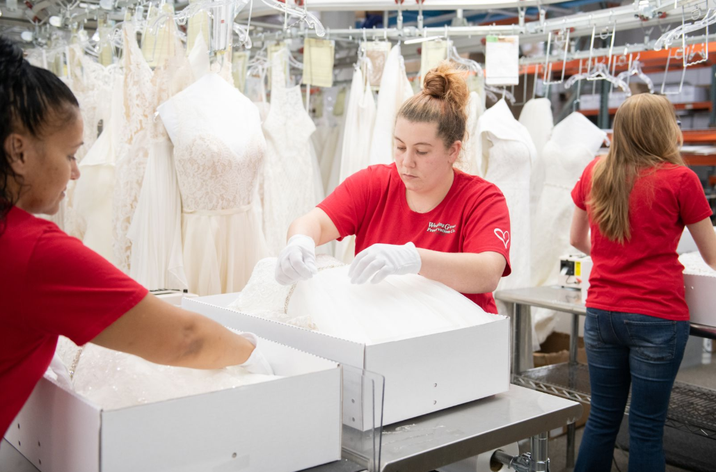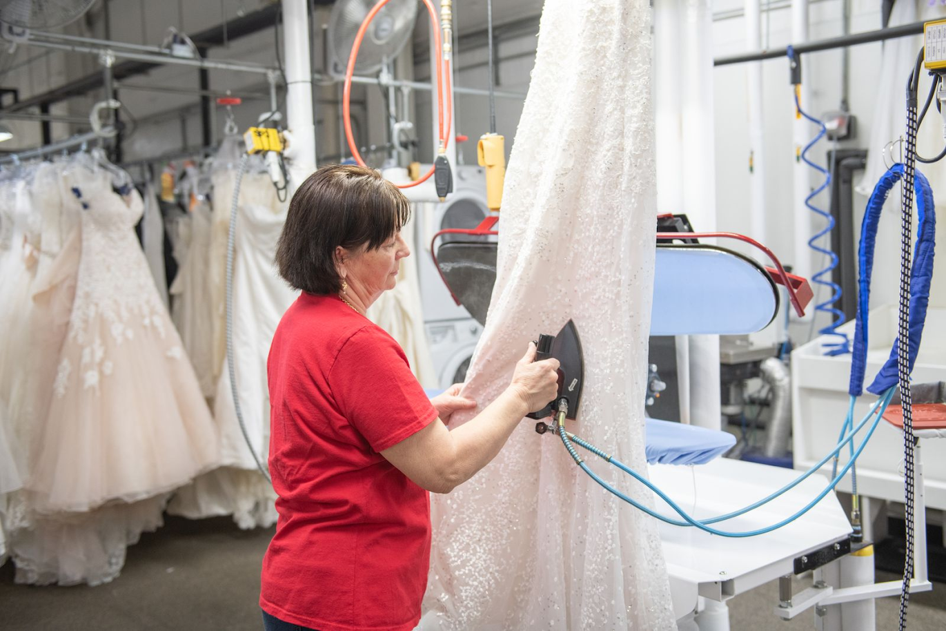 Once the gown is repaired and steamed, it is placed into a preservation chest made of acid-neutral materials. This chest meets all the delicate fabric care standards recommended by the International Fabricare Institute.