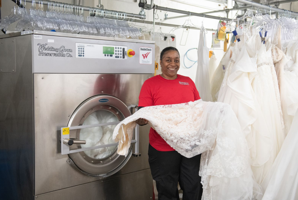 Now that you are aware of how your gown receives gentle cleaning click below to learn about our process for handling repairs, steaming, final inspection, and boxing for long-term preservation.