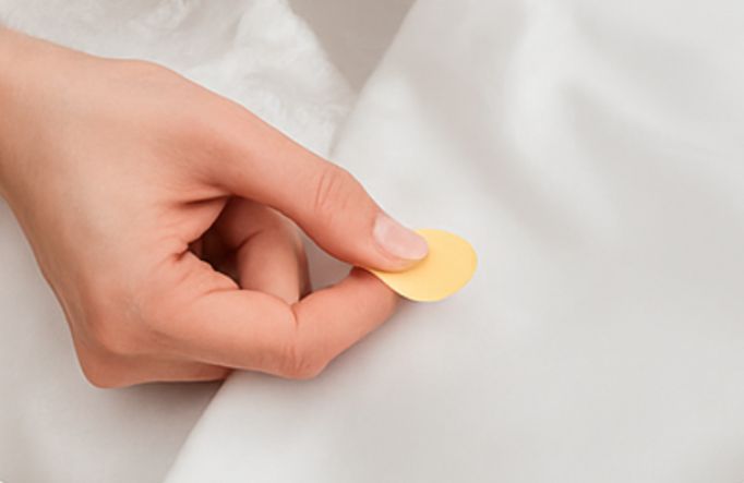 Mark any visible stain using the provided fabric-safe stain stickers. Please ensure you avoid marking the hemline, as the team will handle cleaning that area with care.
