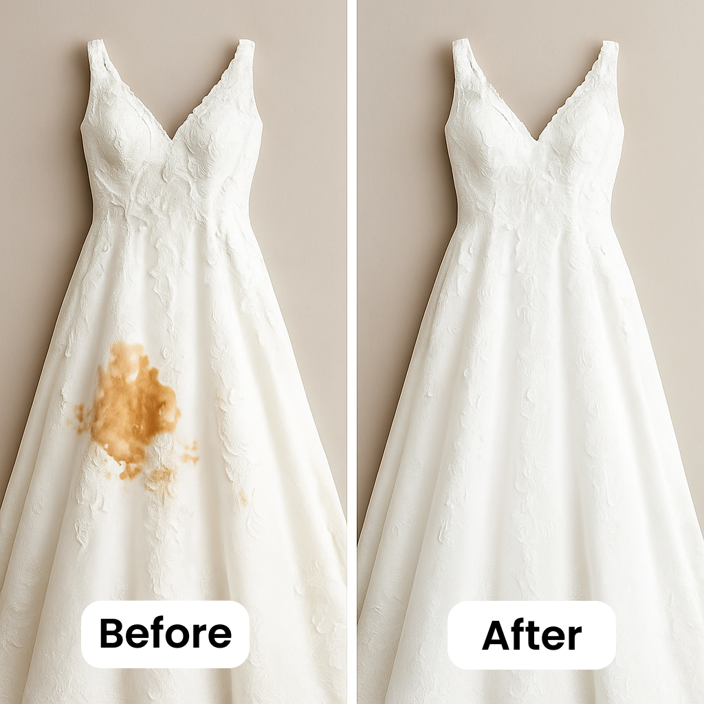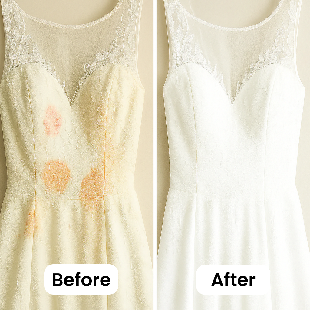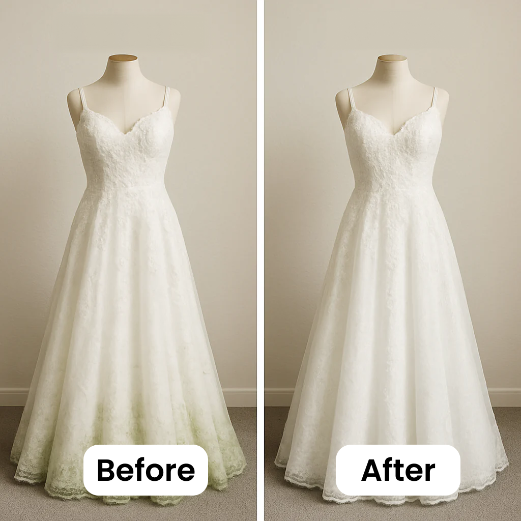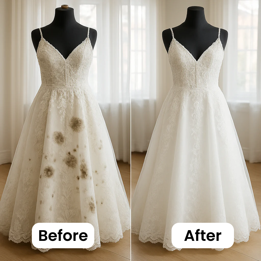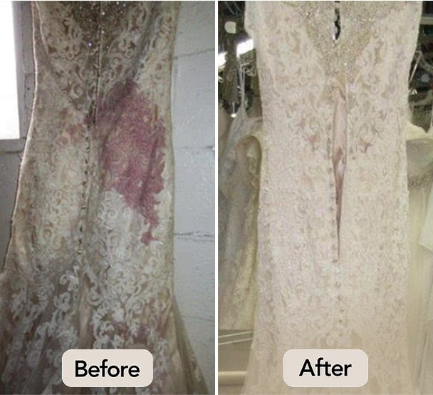 Every dress that comes to us needs different care because time and unexpected events can cause different types of damage to them. Some dresses only have the yellowing with age while others are found in a very bad condition. They are mostly covered with mud, mold, wine, or dirty water.Â